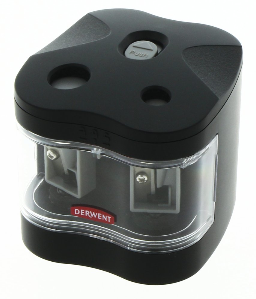 Ascutitoare electrica dubla Derwent Professional, cu baterii, pentru birou, calitate premium, negru