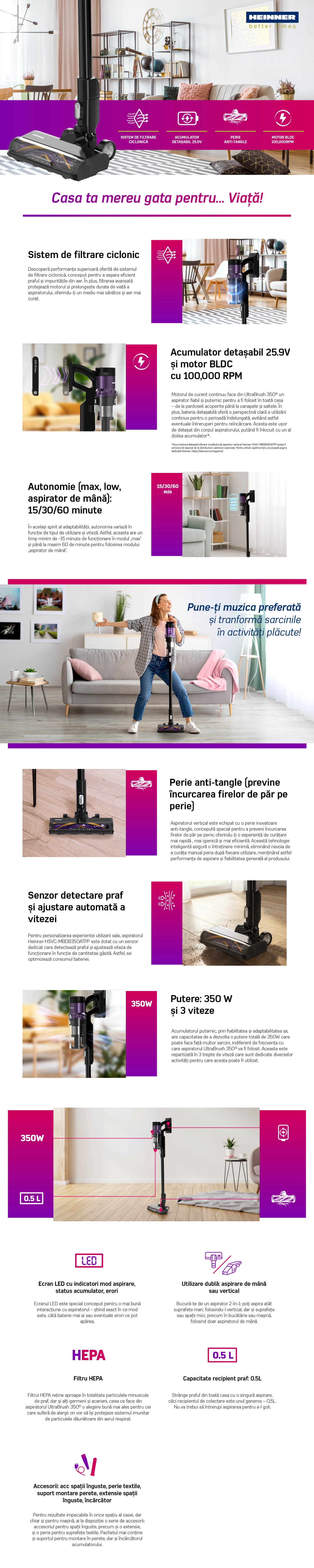 ASPIRATOR VERTICAL HEINNER Ultrabrush 350 HSVC-MBDB350ATPP - pret cu TVA valabil astazi: 742.03 lei