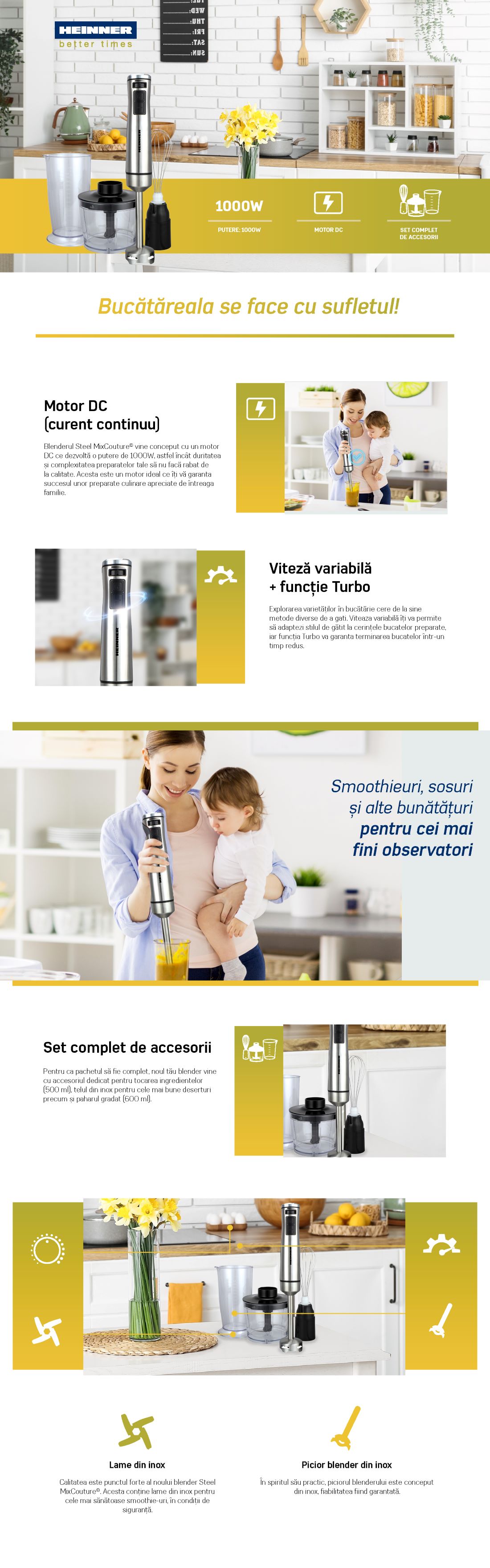 BLENDER DE MANA HEINNER HHB-DC1000SSBK - pret cu TVA valabil astazi: 307.31 lei