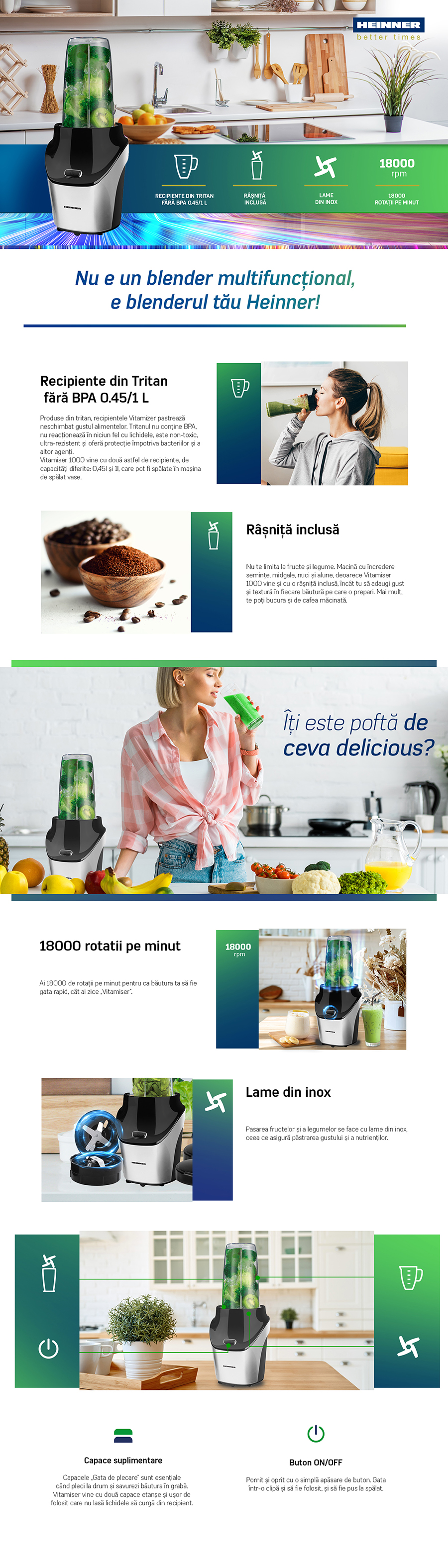 BLENDER SPORT HEINNER VITAMISER 1000 HSB-T1000SS - pret cu TVA valabil astazi: 339.83 lei