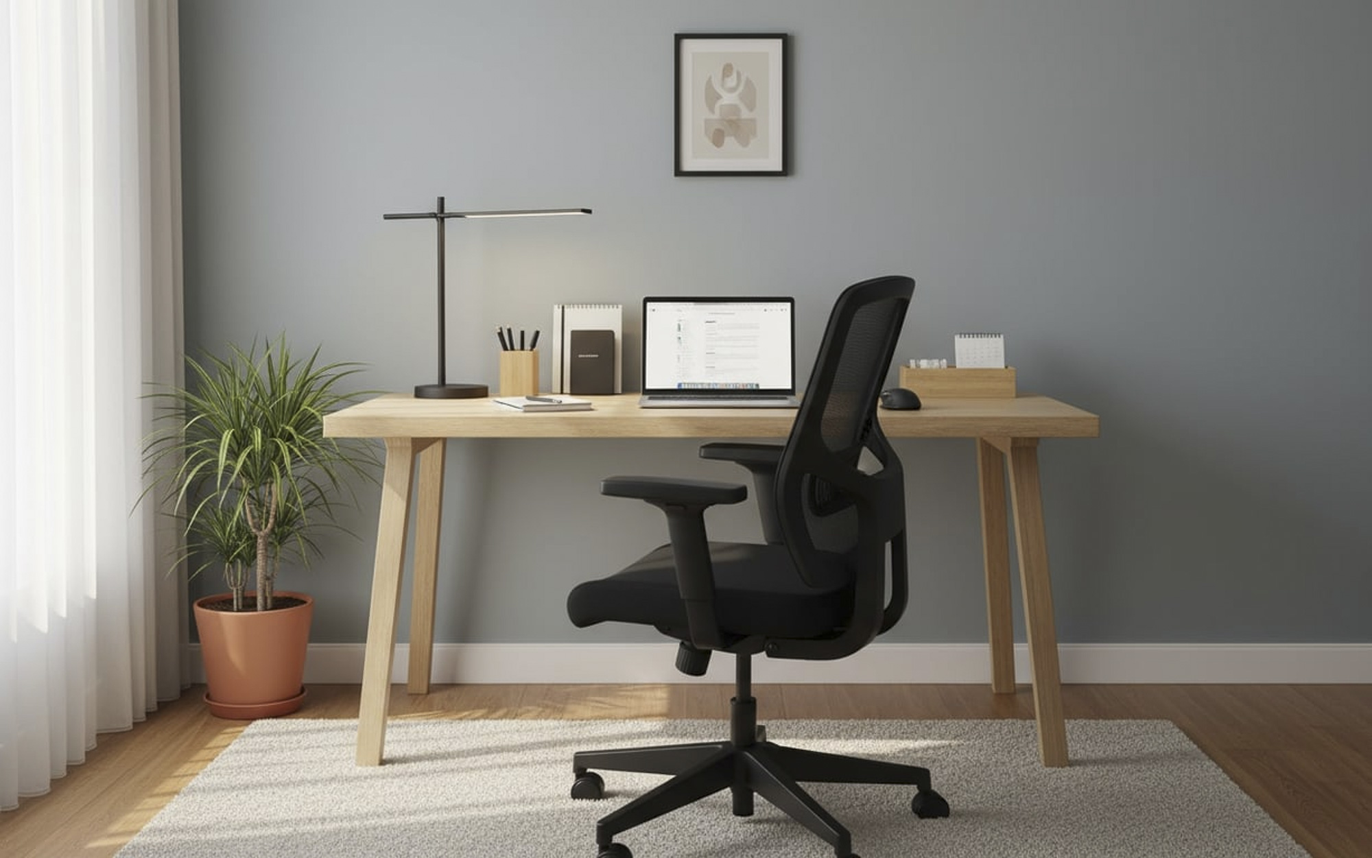 Un spațiu de lucru bine pus la punct, curat și ergonomic, îți permite să te concentrezi exclusiv pe sarcini, transformând lucrul de acasă într-o experiență productivă.