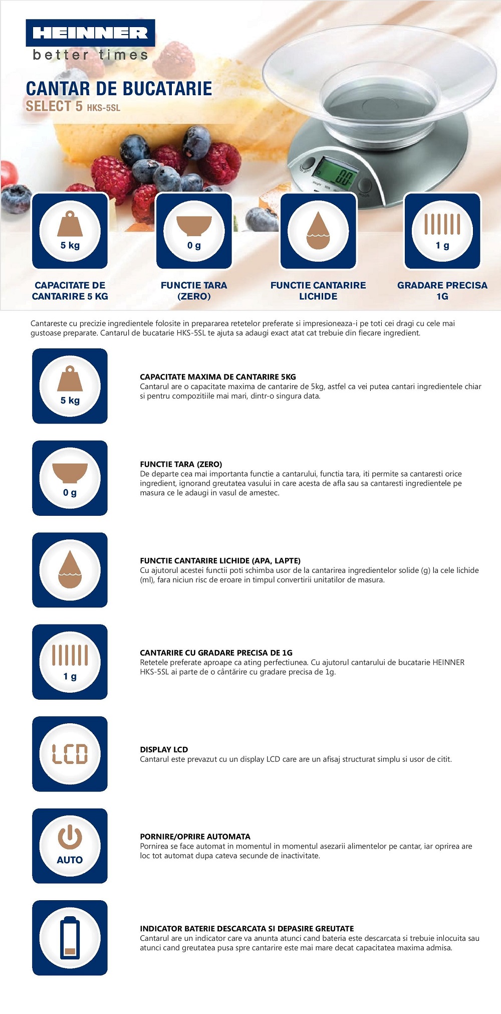 CANTAR DE BUCATARIE HEINNER HKS-5SL - pret cu TVA valabil astazi: 41.61 lei
