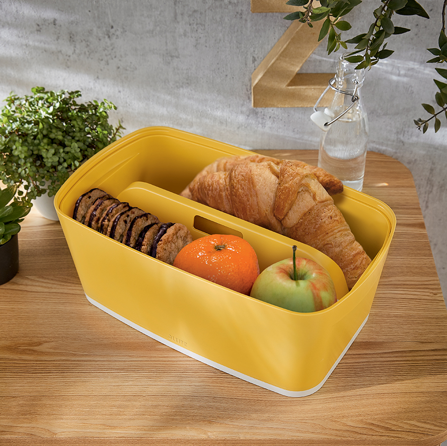 Simțiți-vă ca acasă oriunde vă duce ziua de lucru cu gama Cosy de la Leitz. Cu designul său minimalist în două culori și culorile mate îmbietoare, puteți adăuga stil și culoare spațiului dvs. de lucru. Cutia de depozitare este robustă și ideală pentru depozitarea tuturor obiectelor tale esențiale mai mici, cum ar fi pixuri, obiecte de artizanat sau machiaj. MyBox este certificat pentru siguranța alimentelor. Această cutie face parte din sistemul modular de depozitare MyBox și este compatibilă cu Leitz MyBox, dar poate fi folosită și fără pe birou sau într-un sertar. Acest produs de calitate premium este completarea perfectă pentru casa sau biroul dvs. pentru a vă asigura că rămâneți relaxat și productiv toată ziua. Disponibil in cele trei culori Cosy : galben chihlimbar, albastru celest si gri antracit.