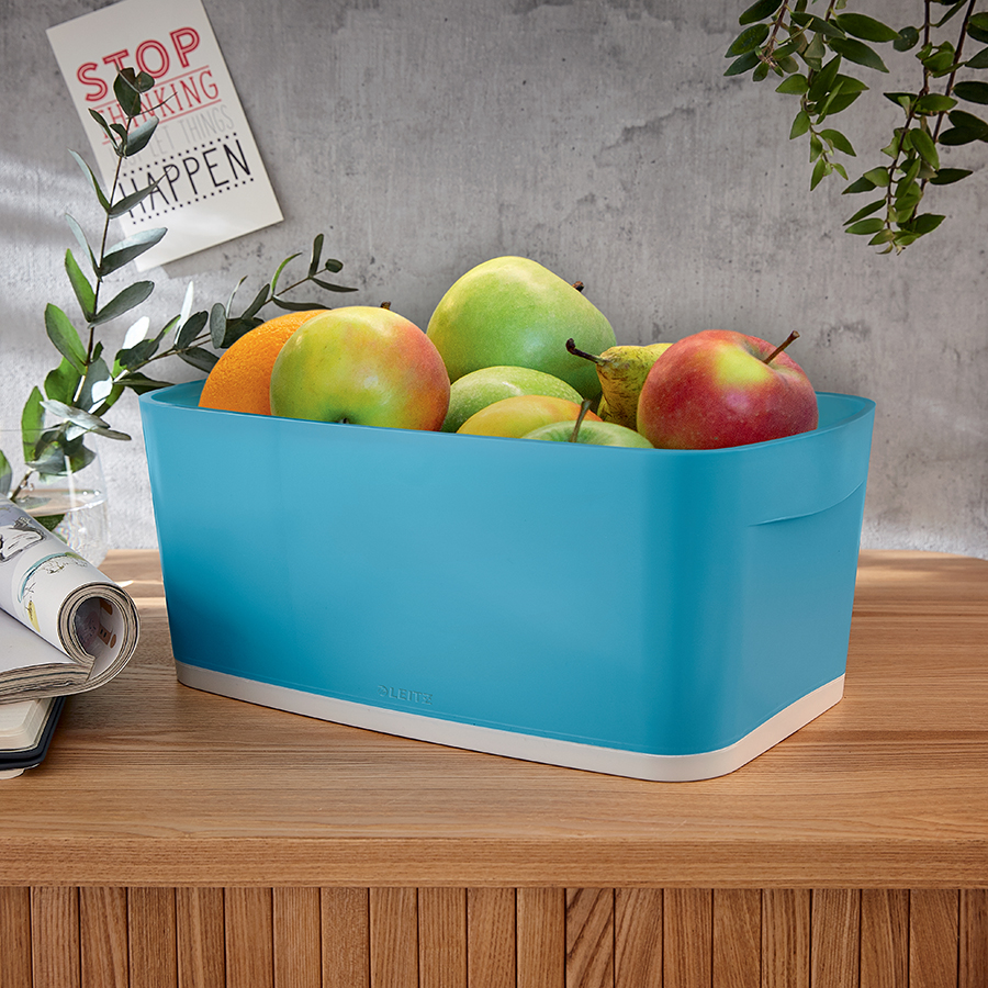 Simțiți-vă ca acasă oriunde vă duce ziua de lucru cu gama Cosy de la Leitz. Cu designul său minimalist în două culori și culorile mate îmbietoare, puteți adăuga stil și culoare spațiului dvs. de lucru. Cutia de depozitare cu capac este robustă și ideală pentru depozitarea tuturor accesoriilor de acasă sau de la birou, cum ar fi capsatoare și perforatoare, articole de artizanat, documente A5 și produse de curățare. MyBox este certificat pentru siguranța alimentelor. Această cutie face parte din sistemul modular de depozitare MyBox și compatibilă cu tăvile organizatoare Leitz MyBox, dar poate fi folosită și fără. Acest produs de calitate premium este completarea perfectă pentru casa sau biroul dvs. pentru a vă asigura că rămâneți relaxat și productiv toată ziua. Cutiile sunt disponibile in cele trei culori Cosy : galben chihlimbar, albastru celest si gri antracit.