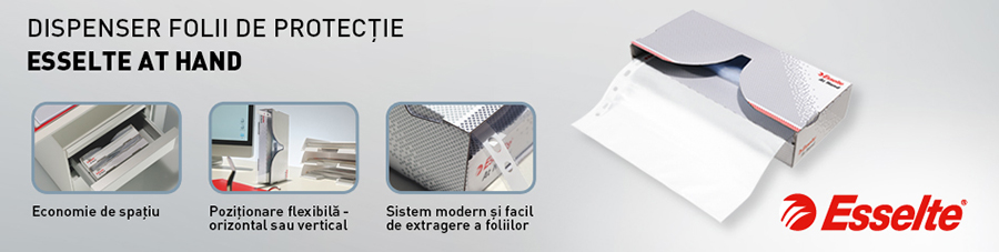 Dispenserul Esselete este solutia perfecta pentru protejarea documentelor tale. Usor de manevrat si usor de depozitat. Foliile raman perfect drepte fix atunci cand ai nevoie!