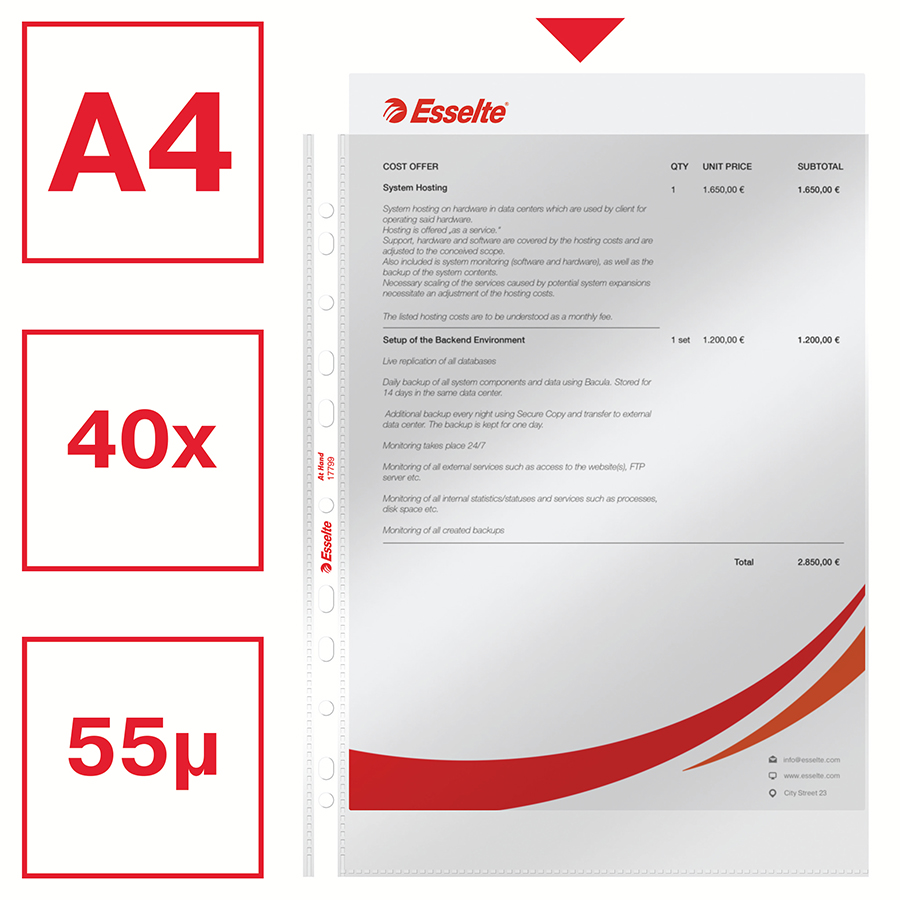 Dispenser folii de protectie, A4, cristal, 55 microni, 40 buc, Esselte - pret cu TVA valabil astazi: 44.90 lei