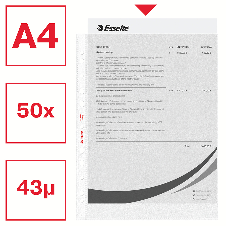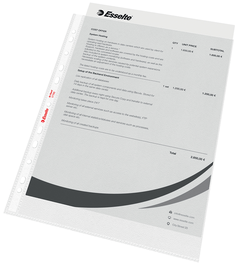 Dispenser folii de protectie, A4, standard, 43 mic, 50 buc/cutie Esselte - pret cu TVA valabil astazi: 39.99 lei