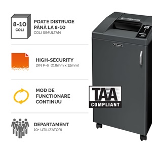 Distrugator documente manual, 10 coli, P6, securitate inalta, functionare continuu, Fortishred 3250SMC Fellowes - pret cu TVA valabil astazi: 12,236.00 lei