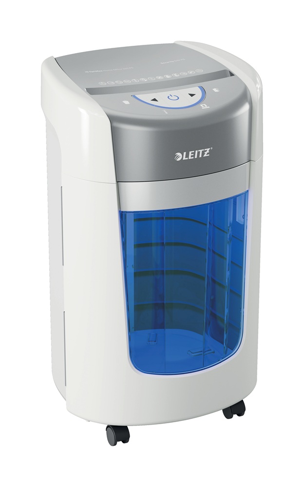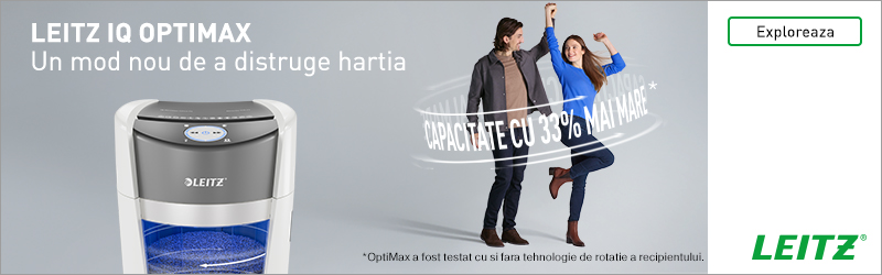 Distrugătorul de documente Leitz IQ OptiMax pentru biroul de acasă oferă o soluție de distrugere inovatoare și elegantă, oferind o securitate excepțională a documentelor și liniște. Acest distrugător de hârtie DIN P5 de înaltă securitate distruge fără efort până la 6x coli A4 în bucăți micro-cut, făcându-l un distrugător mic ideal pentru uz personal și pentru biroul de acasă. Cu Tehnologia Unică de Rotație a Coșului (BRT), distrugătorul Leitz maximizează capacitatea acestuia cu +45%*.