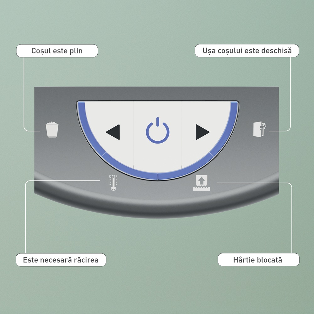 - Capacitatea coșului de 15 l (până la 225 de coli A4)