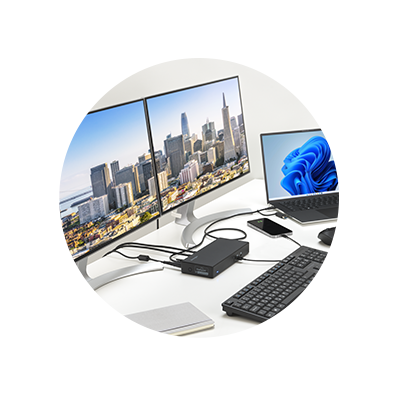 - Susține laptopuri USB-C® și USB-A vechi care rulează Windows 7 sau versiuni superioare, macOS 10.14 sau versiuni superioare, Chrome OS 44 sau versiuni superioare.