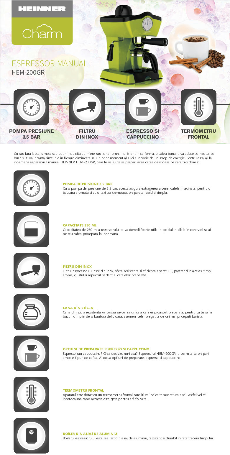 ESPRESSOR HEINNER CHARM HEM-200GR - pret cu TVA valabil astazi: 196.27 lei