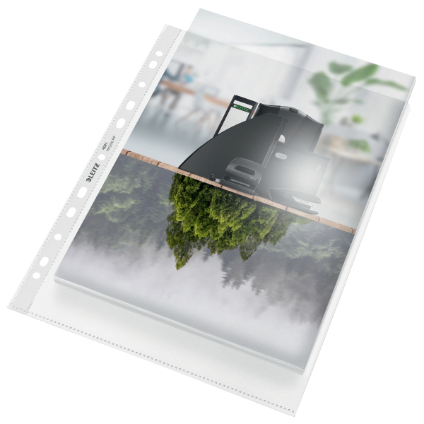Cu un design atractiv și material de calitate superioară, folia de la Leitz este potrivită pentru protejarea documentelor arhivate sau transporate, având o capacitate de până la 80 coli. Cele 11 perforații permit arhivarea documentelor în biblioraft și caiet mecanic. Fabricată din plastic 90% reciclat (certificare externă UL), cu impact neutru asupra mediului și reciclabilă 100%.