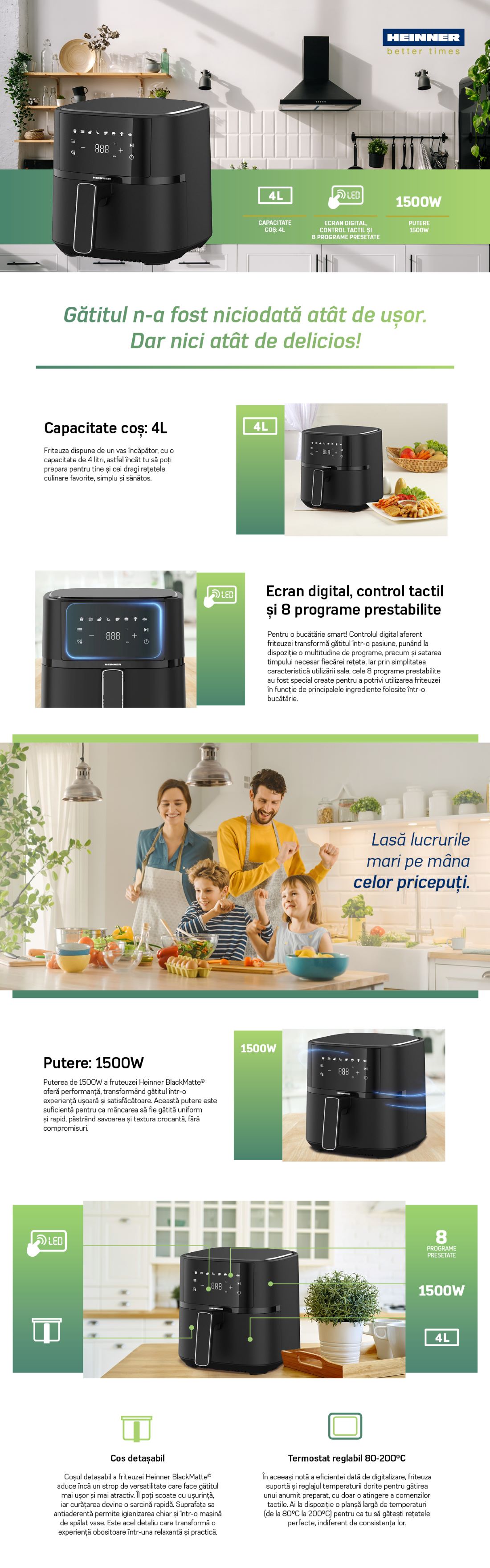 FRITEUZA CU AER CALD HEINNER BlackMatte HAF-B4BK1500 - pret cu TVA valabil astazi: 221.65 lei