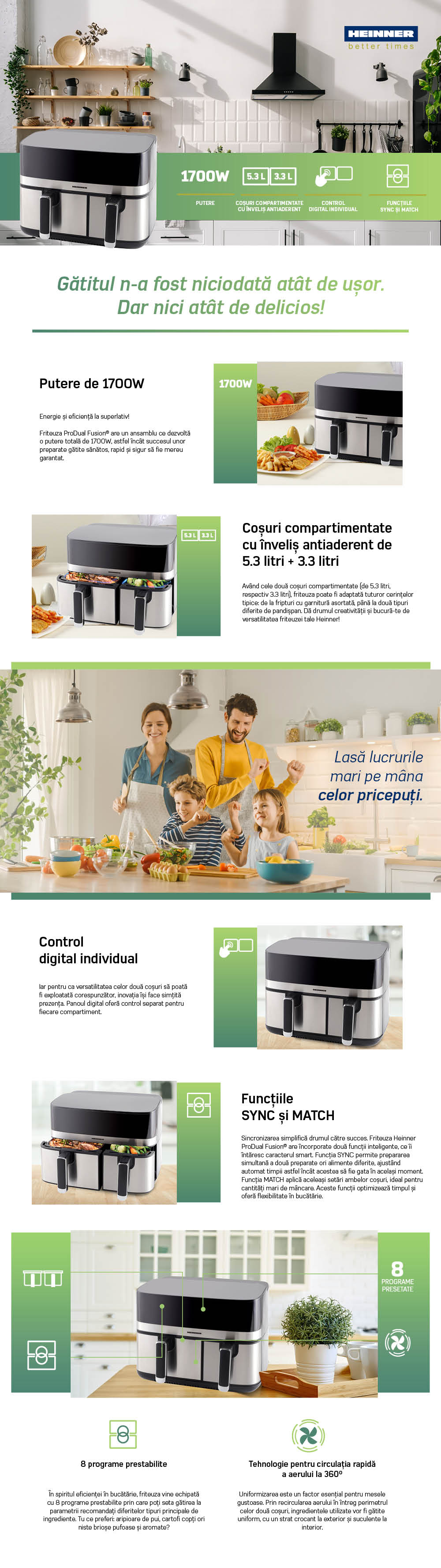 FRITEUZA DUBLA CU AER CALD HEINNER PRODUAL FUSION HAF-H9DB17BKS - pret cu TVA valabil astazi: 430.72 lei
