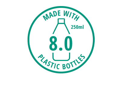 8.10 sticle de plastic de 250 ml au fost transformate în fire de poliester PET pentru a crea acest manșon - 60% din totalul produsului este poliester reciclat post-consum (PCR).