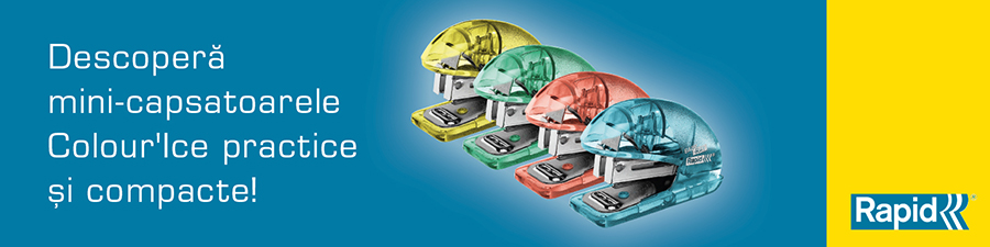 Mini-capsator plastic Colour Ice F4, 10 coli, Rapid - pret cu TVA valabil astazi: 25.85 lei