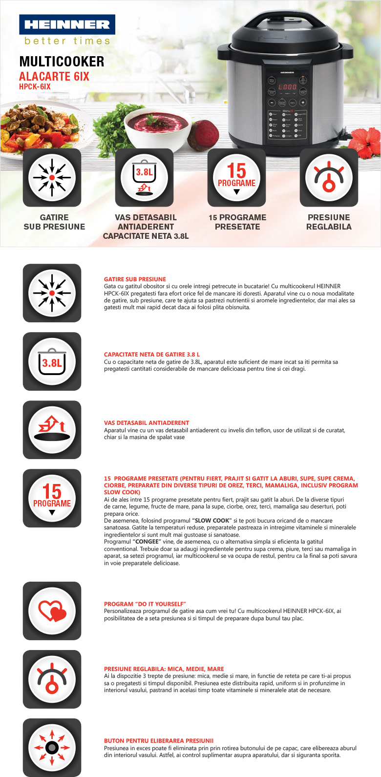 MULTICOOKER CU PRESIUNE HEINNER HPCK-6IX - pret cu TVA valabil astazi: 522.42 lei
