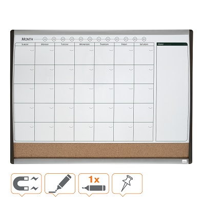 Organizator Combo, lunar, magnetic si pluta, 58.5x43 cm, include marker, burete si magneti, negru NOBO - pret cu TVA valabil astazi: 180.95 lei