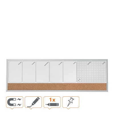 Organizator Combo, saptamanal, magnetic si pluta, 58x19 cm, marker inclus, alb, rama gri NOBO - pret cu TVA valabil astazi: 68.15 lei