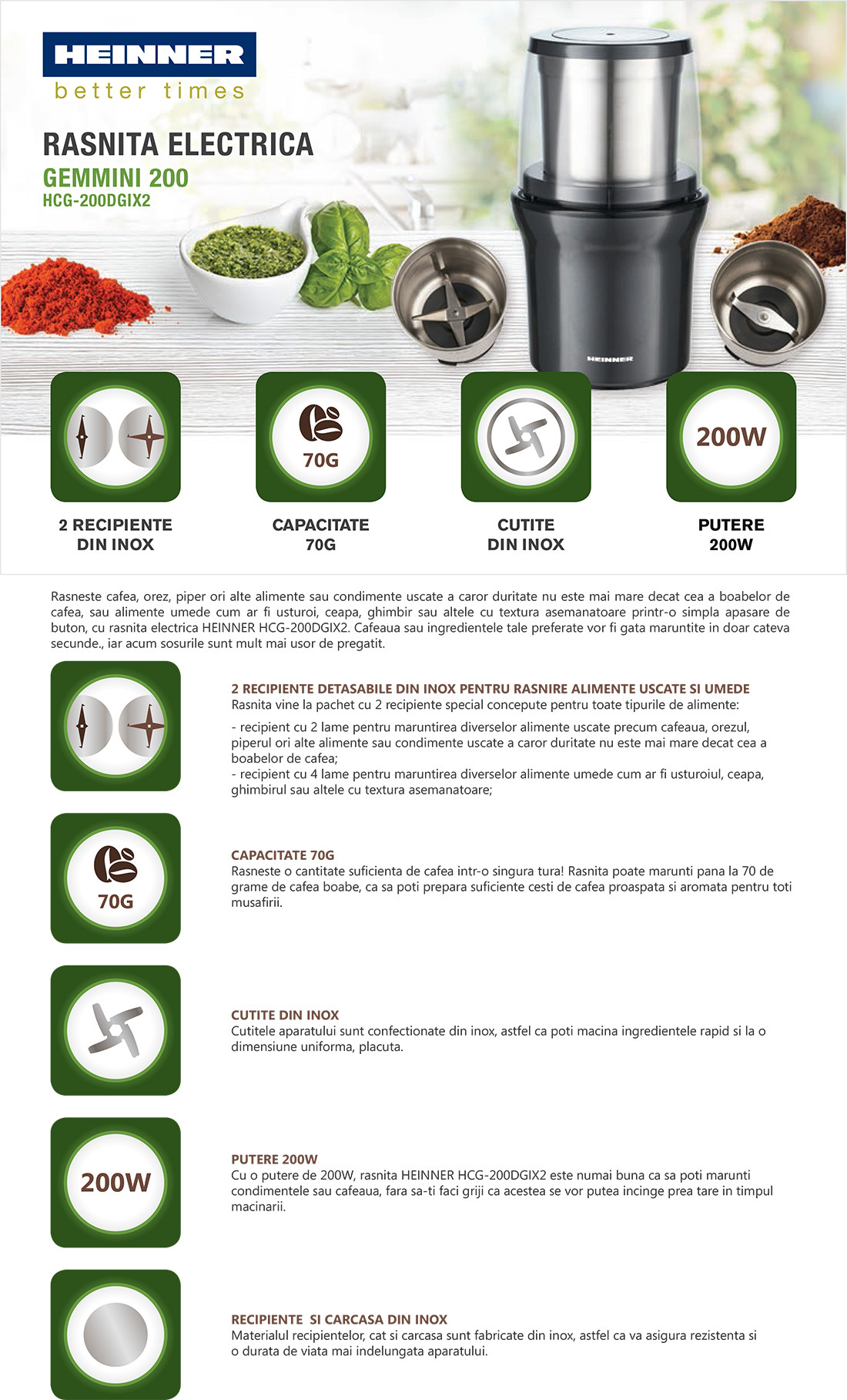 RASNITA ELECTRICA HEINNER HCG-200DGIX2 - pret cu TVA valabil astazi: 135.34 lei