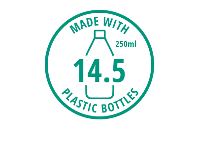 Sticlele de plastic de 14,5 x 250 ml au fost transformate în fire de poliester PET pentru a crea acest rucsac - 42% din totalul produsului este poliester reciclat post-consum (PCR).
