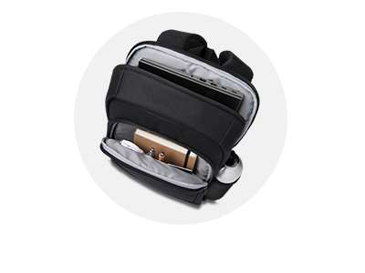 Oferă un compartiment intern căptușit pentru laptopuri de până la 16”, spațiu pentru dosare și accesorii, un compartiment frontal cu fermoar pentru acces rapid la periferice și două buzunare laterale pentru sticle de apă sau o umbrelă.