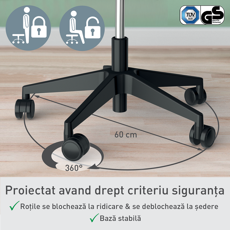 Scaun ergonomic Leitz Ergo pozitie sezut/in picioare cu roti - pret cu TVA valabil astazi: 1,199.99 lei