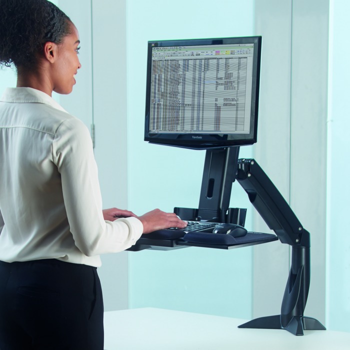 Transforma spatiul de lucru fix de pe birou intr-unul flexibil cu tehnologia Easy Glide Work Platform. |