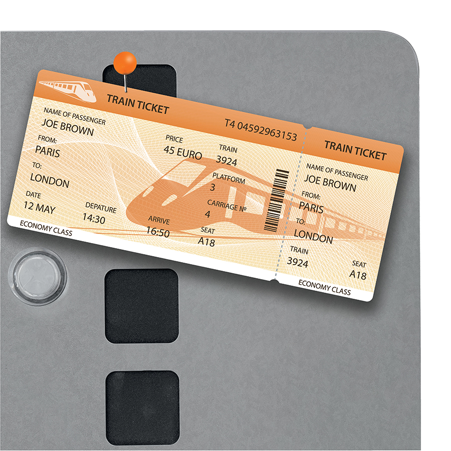 · Suprafață de scriere argintie magnetică cu o bandă din spumă neagră pentru plasarea notițelor cu ace