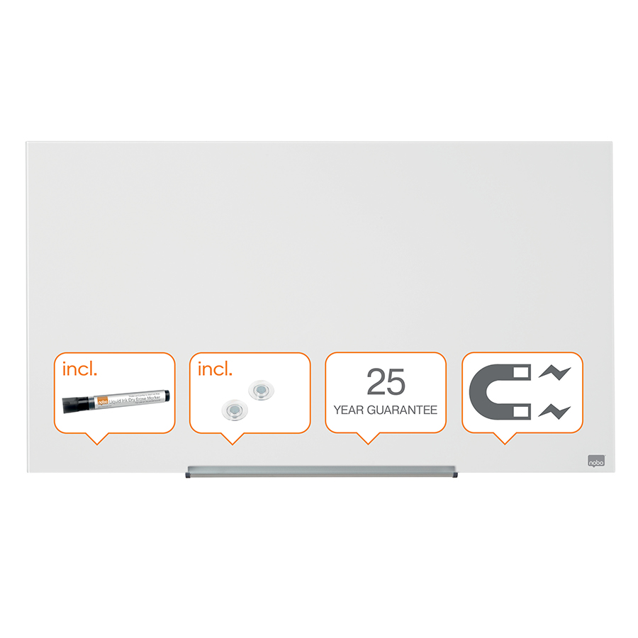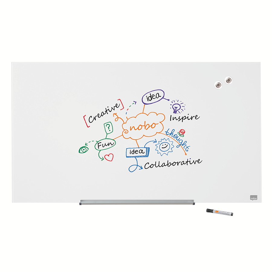 Comentarii Tabla de sticla alb, Impression pro, 100x56 cm, magnetica, include marker, tavita, magneti, Nobo