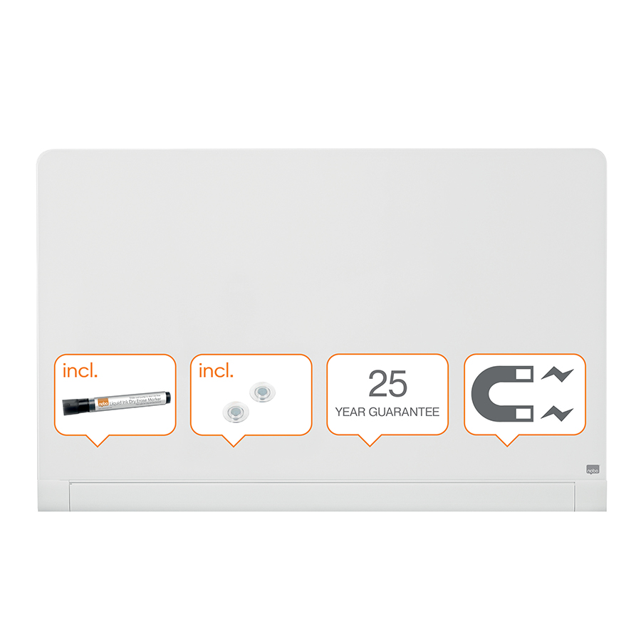 Comentarii Tabla de sticla alb, Impression pro, 126x71 cm, magnetica, colturi rotunjite, include marker, tavita, magneti, Nobo