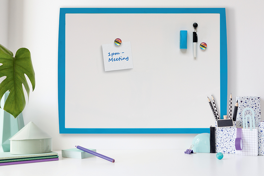 Lumineaza-ti biroul si personalizeaza-lasa cum iti place! Tabla Nobo cu rama albastra are o suprafata magnetica durabila. Rama din plastic curbata adauga un strop de culoare spatiului tau de munca si arata minunat. Tabla este ideala pentru notarea listelor de cumparaturi, lucruri de realizat sau orice alte notite de zi cu zi.