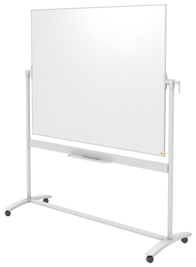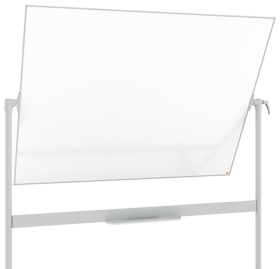 Culoarea albă rămâne albă… creată să reziste. Tabla mobilă emailată Nobo Prestige are o suprafață emailată magnetică excelentă ce poate fi ștearsă extrem de ușor și fără să lase urme, rezistentă la petele de cerneală, semnele de pix, zgârieturi și lovituri. Soluția ideală atunci când spațiul de pe perete este limitat, roțile oferă mobilitate, astfel poți muta tabla din sala de ședințe în zonele de relaxare sau orice altă încăpere. Are 2 fețe de prezentare cu un pivot orizontal, tăviță încăpătoare pentru instrumentele de scris, include instrument de scris Nobo și magneți. Garanție pe viață.